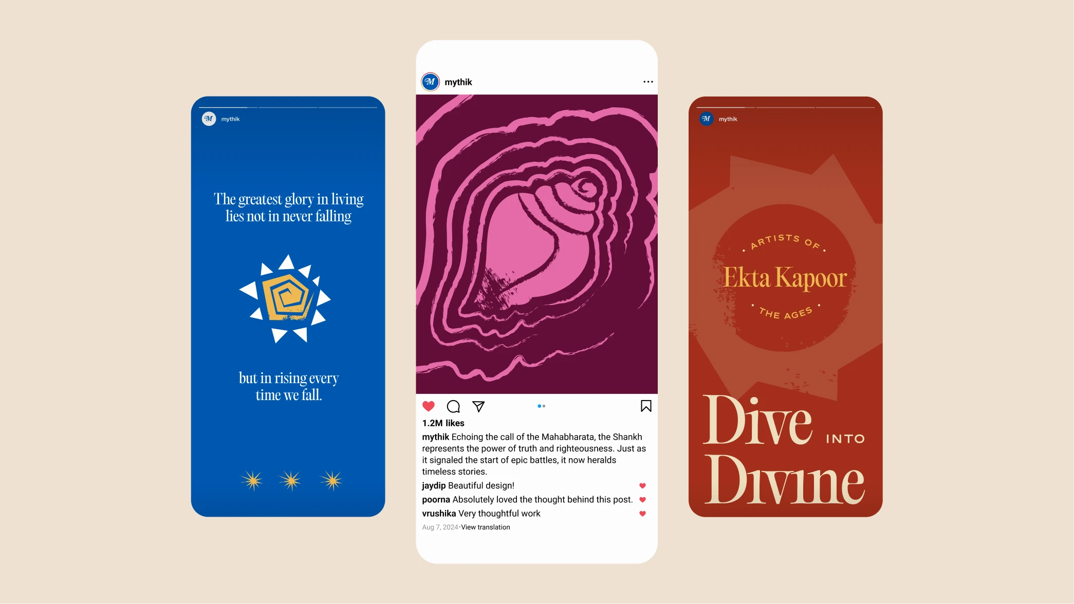 For Mythik, we crafted a storytelling universe that mirrors India’s diverse spirit – timeless, immersive, and visually compelling. Each element was envisioned to rekindle cultural connection and curiosity.