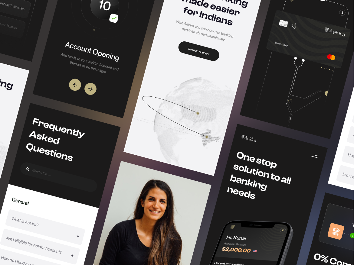 Brucira partnered with Aeldra, a Silicon Valley–based global banking startup, to design a sleek, human-centered digital experience that reflects their vision of effortless, borderless finance.