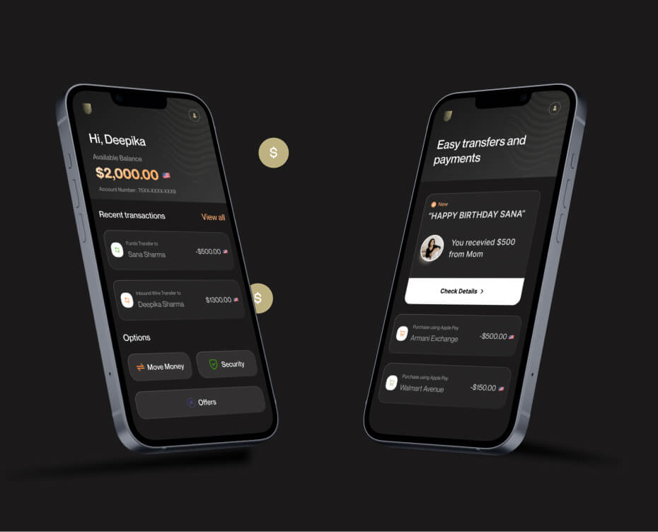 We built a refined, modern visual language that reflected Aeldra’s global and aspirational identity. Soft gradients, clean lines, and minimal layouts created an atmosphere of trust and sophistication. Subtle animations and friendly illustrations introduced warmth and approachability. The result was a cohesive visual system — sleek, human, and effortlessly modern — that mirrored Aeldra’s vision of seamless global banking.