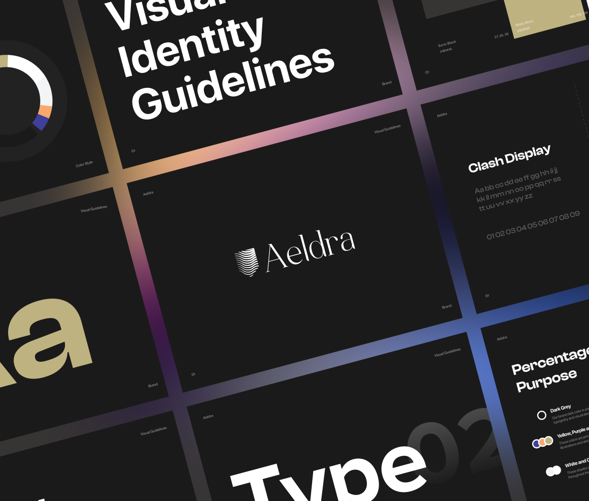 Our moodboard embraced a sleek, minimal aesthetic with playful undertones to reflect Aeldra’s modern, global identity. Using Clash Display, we achieved a refined yet bold typographic presence that conveyed trust and sophistication while making banking feel effortless and human.