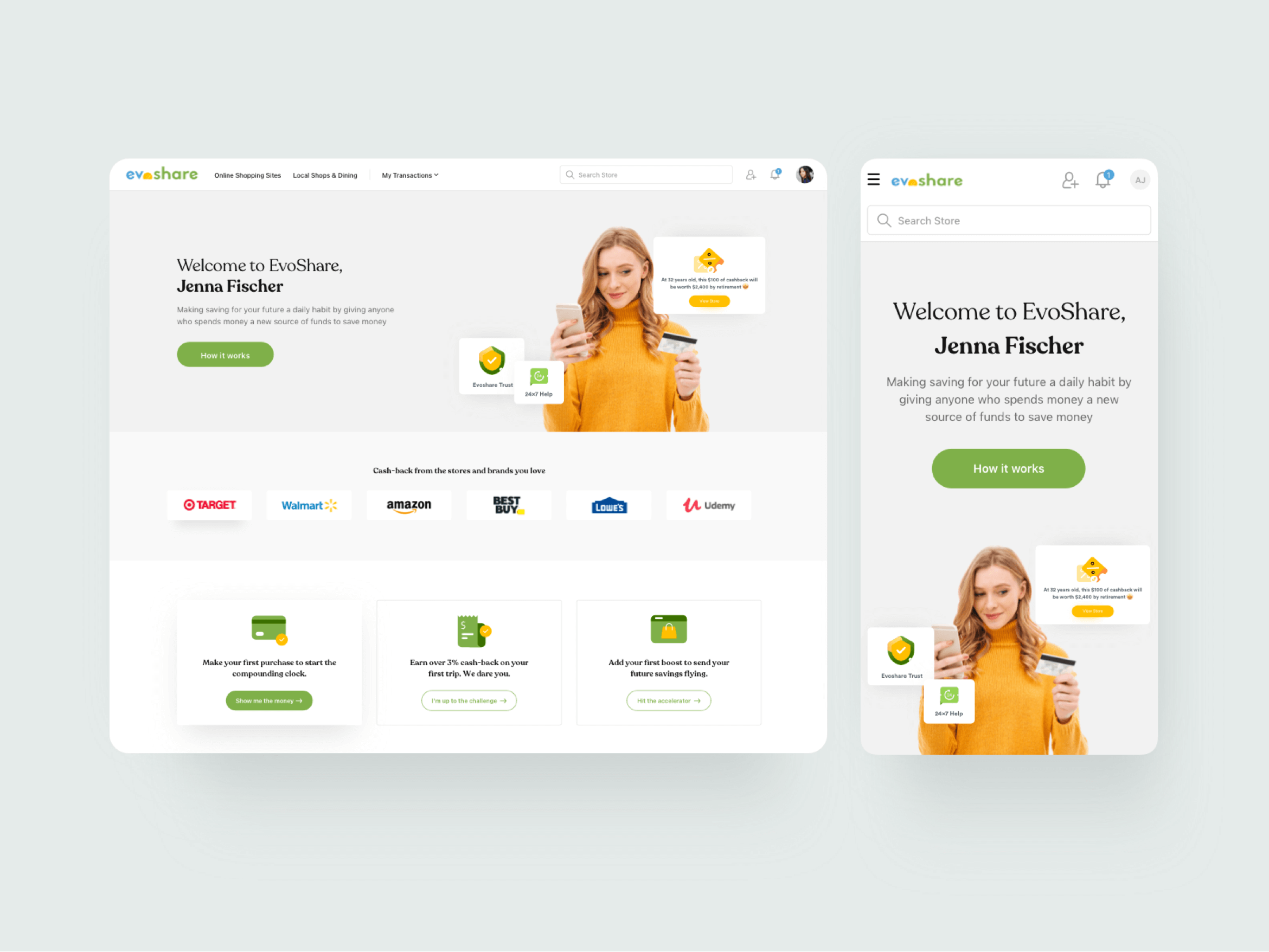 EvoShare is a financial platform that helps users to save for retirement. It is powered by cashbacks that users earn through spending.