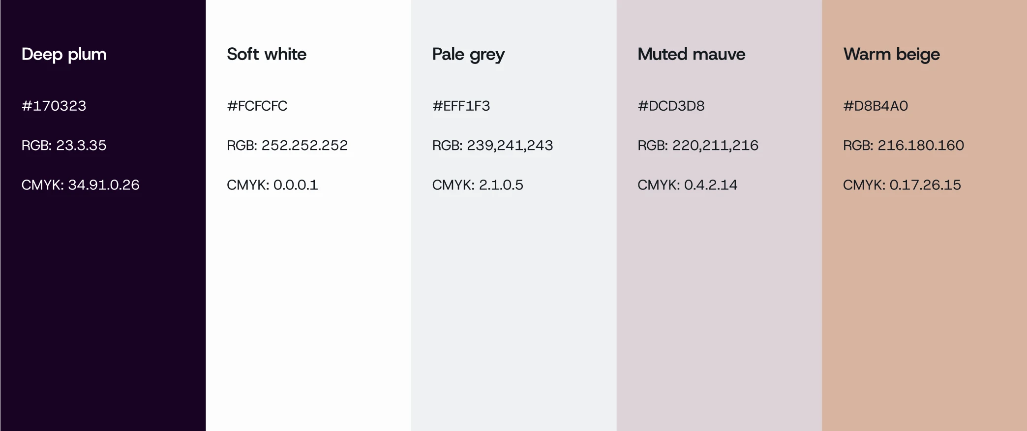 The moodboard was built using Plum’s core colour palette, softened with neutral tones to create balance and harmony. Highly legible sans-serif typefaces introduced a sense of clarity and precision, hinting at the brand’s scientific side, while stylised, decorative typography added warmth and an organic touch. Together, these elements set the foundation for a refined visual language that quietly reflected Plum’s balance of chemistry and nature.