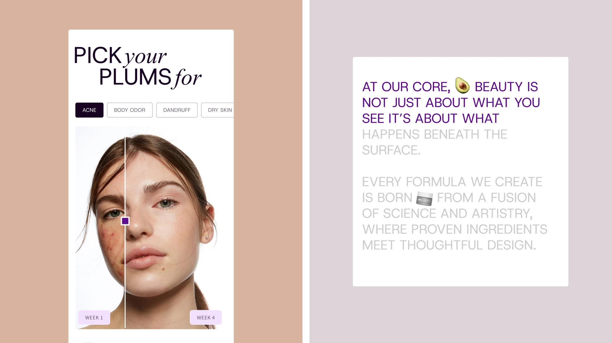 We approached Plum’s redesign as an exercise in balance — between science and emotion, function and beauty. Guided by an iterative, mobile-first process, we designed a digital narrative that embodies the brand’s philosophy, creating an experience that’s both purposeful and distinctly Plum.