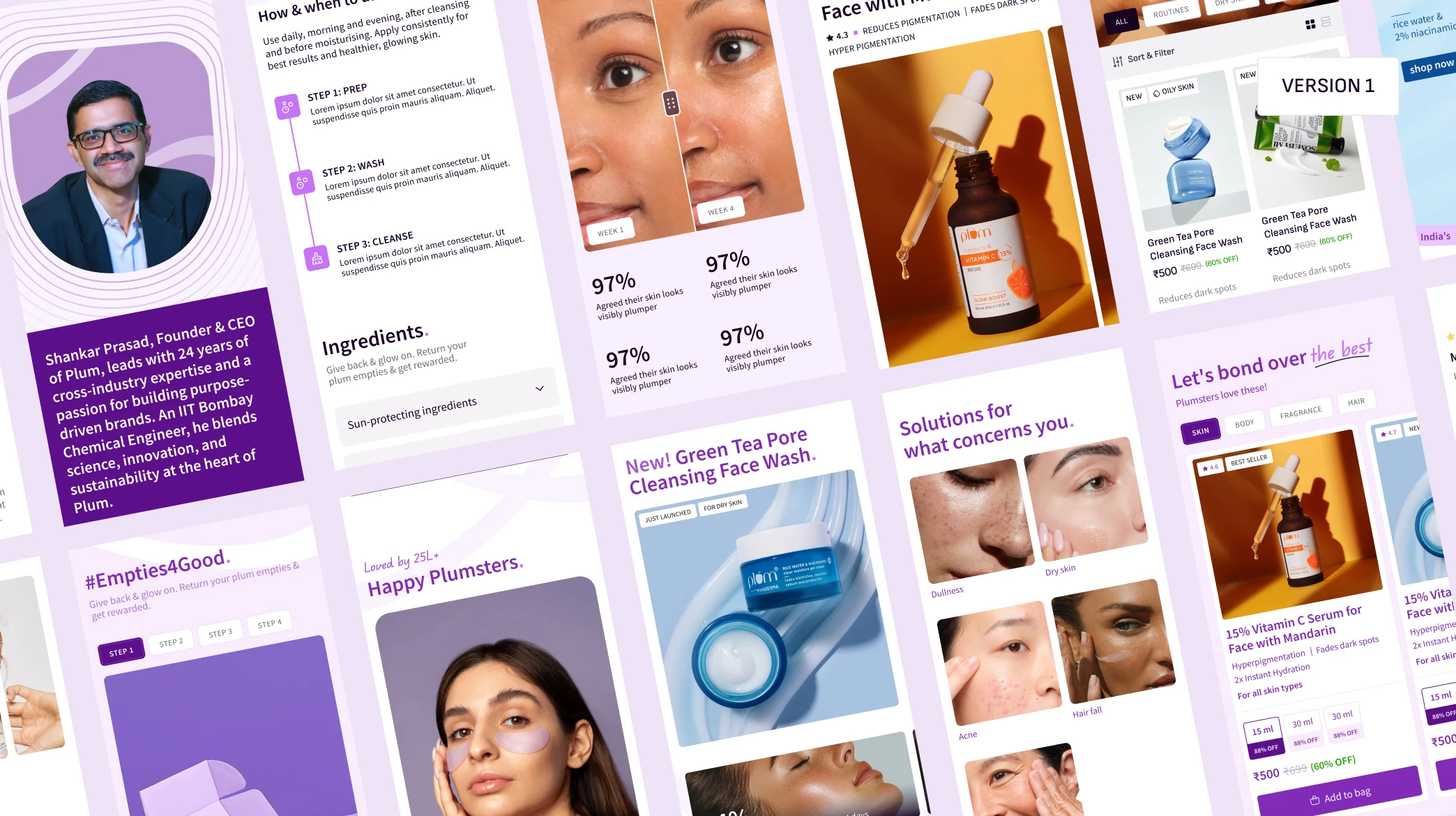 We redesigned Plum’s website to bring its “We have Chemistry” philosophy to life, creating a clear digital narrative that balances natural ingredients with the brand’s science-backed formulations. The new experience highlights research, transparency, and product efficacy while keeping the interface clean, engaging, and easy to explore.