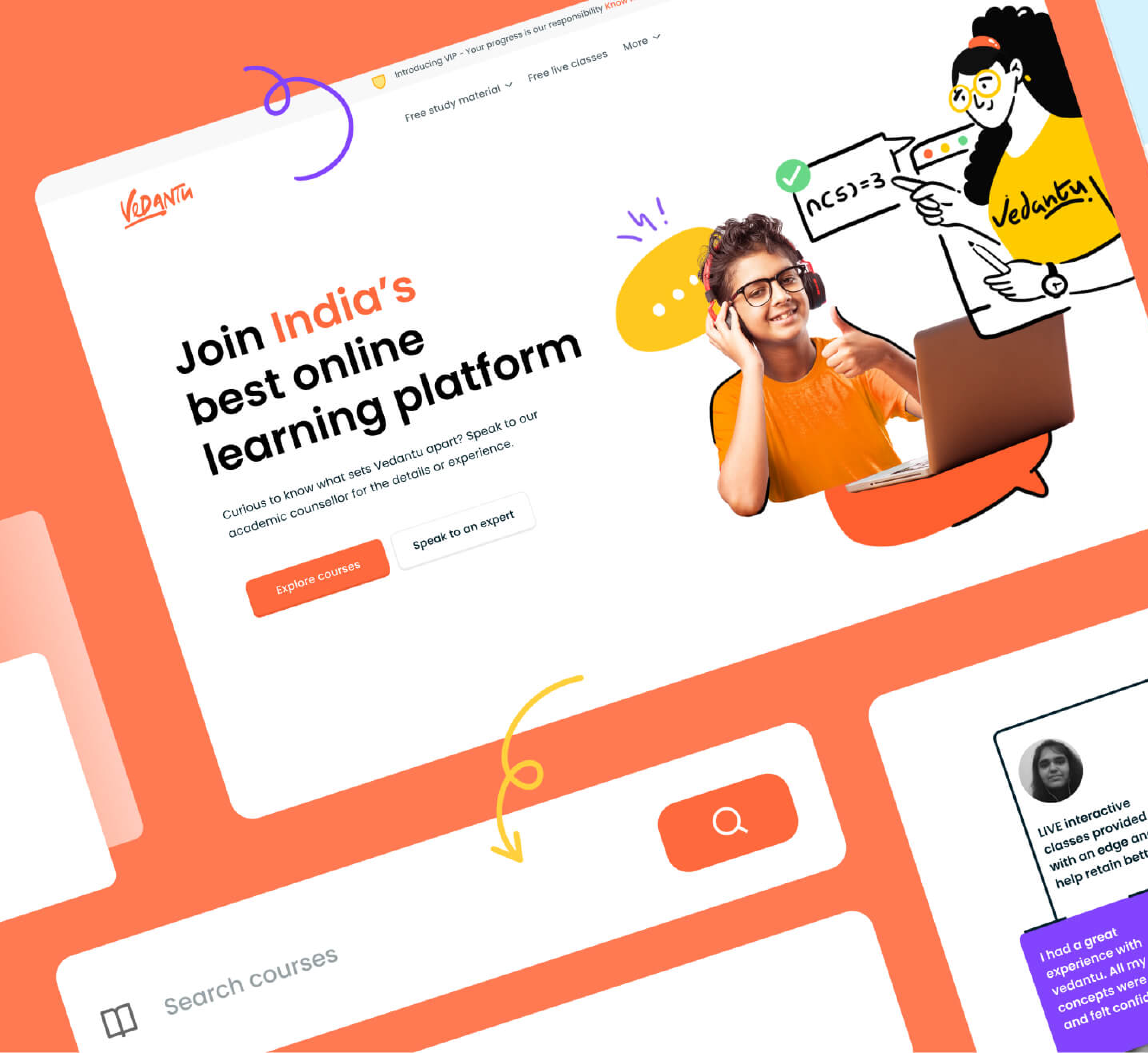 We partnered with Vedantu to redesign their web and mobile platforms — blending playfulness, clarity, and performance to create an engaging digital experience that inspires better learning.