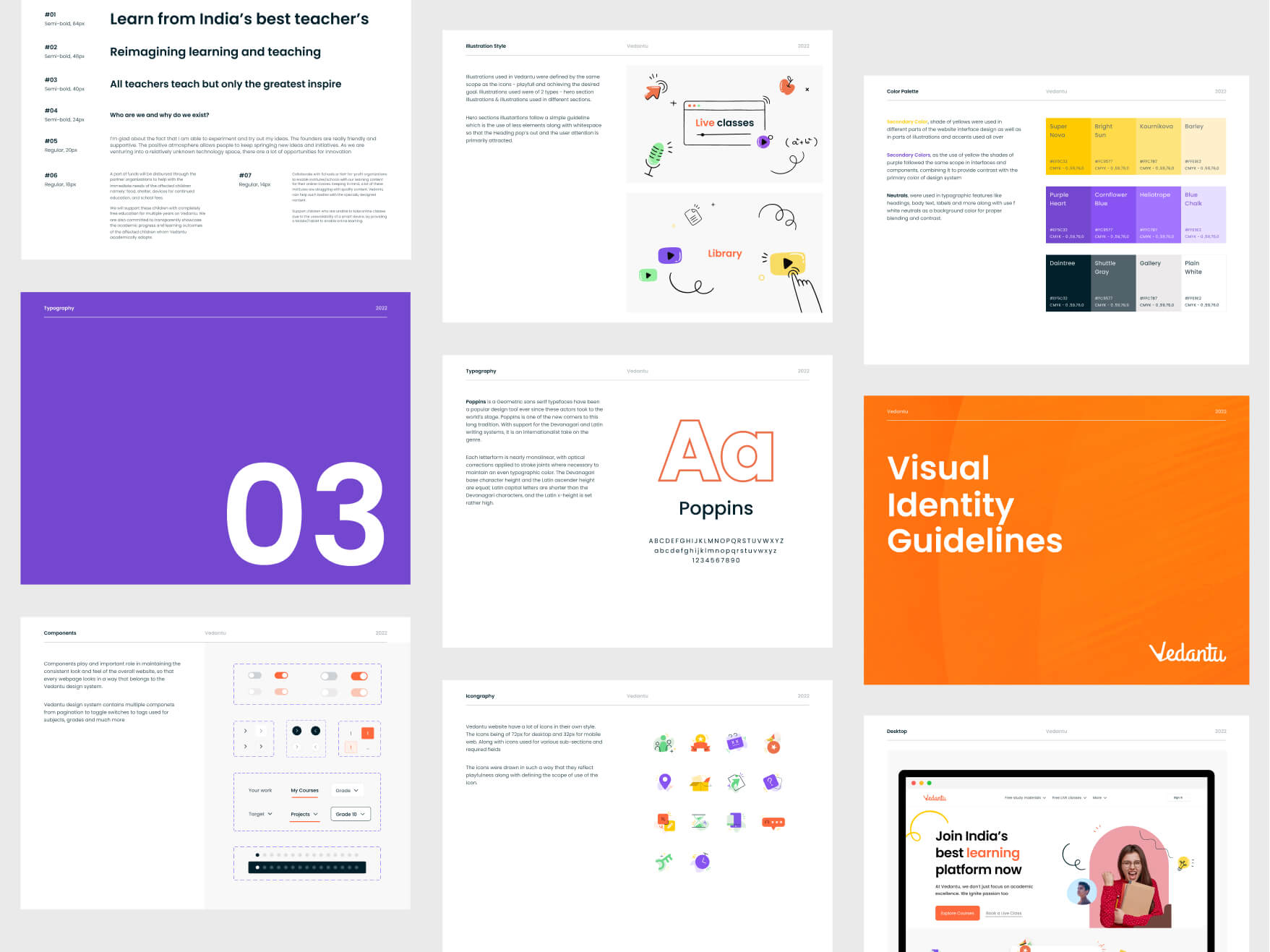 We began with an in-depth discussion with Vedantu’s founding team to understand their goals, vision, and mission, ensuring complete alignment from the start. Following this, we developed low-fidelity wireframes while simultaneously exploring typography and visual themes for the redesign. Once the direction was finalized, we moved on to custom illustrations, icons, and the overall web design that defined Vedantu’s refreshed digital identity.